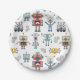 Paper plates with a fun robot pattern design.