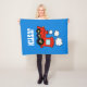 Red toy choo choo train personalized fleece blanket for kid. Cute comforter personalized with kids name, quote or monogram letters. Cute locomotive design for little boys. Make one for son, grandson, new baby, grandchild, nephew etc. Fun cartoon illustration for children. Railroad theme. Baby shower and 1st Birthday gift ideas for children. Small size.