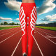 A very unique pair of compression pants leggings for track and field or cross country runners, featuring a mirror image of the iconic Hermes Winged Foot printed on both sides. The background color is set on bright red but can be changed to any color you want via the "Customize" button. Perfect for track and field or cross country workouts!
