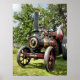 A photographic design of a beautifully restored vintage steam traction engine.