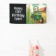 This is a great birthday banner for the farmer and lover of farm equipment. Whether the birthday boy or girl is turning eight or forty, the age can be personalized. The design features a tractor on a black diamond plate background. A rugged birthday banner.
