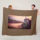 This blanket features a photo of a tractor and wagon sitting and waiting for a load of grain in a field during fall.