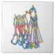 This design has an illustration of a rock climbing rack that has a set of quickdraws and a set of wires / rocks / nuts hanging from a climbing harness. A colourful design for anyone who loves rock climbing.