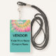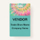 Trade show badges in an artful design with name space template for three lines of text including Vendor, Trade Show Name, and company name in an artsy colorful design displayed on both sides.