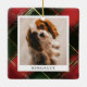 Capture the holiday spirit and your fur baby's adorable personality with our festive plaid Pet Photo Christmas Ornament. This traditional design showcases your beloved pet in a charming photograph, surrounded by a watercolor plaid background in warm shades of red, gold, and green. Personalize it with your pet's name for a one-of-a-kind addition to your tree. Perfect for all pet owners who love to celebrate their fur babies during the most wonderful time of the year.