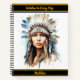 A powerful representation of a Native Indian woman adorned with a colorful feather headdress, showcasing her strength and cultural heritage in a watercolor style
