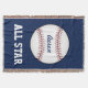 A traditional baseball decorates this fun throw blanket. Personalize this blanket by changing the name. This blanket is great for a baseball fan, baseball lover, boy's room, bedroom, men, Father's day, sports fan, etc....The design is from original art.