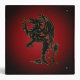 Black dragon bordered by a thin golden line on a red and black gradient background.