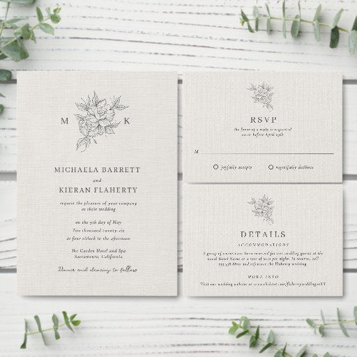 Traditional Botanical Flower Monogram Wedding Invitation