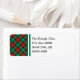Personalized return address labels with a festive traditional Christmas plaid pattern in shades of bright red and green with black highlights.