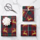 Traditional Christmas Reindeer Plaid Wrapping Paper Sheets