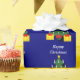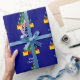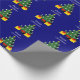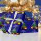 This simple colourful Christmas wrapping paper features my design of a candle lit Christmas tree and presents on a deep blue background and the editable words “Happy Christmas “