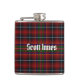 Stylish plaid flask, with the colorful clan Innes tartan plaid pattern. Personalize the bold white text to read what you want. Great gift idea.