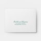 Simple Wedding RSVP Envelope featuring your names in an elegant calligraphy along with your return address. All text is in a jewel tone emerald green over a white background and may be changed to any color you wish by clicking the "customize" button. This classic style Wedding RSVP Envelope with traditional calligraphy is perfect for a formal wedding.