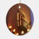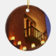 Traditional farolitos light up adobe structures ceramic ornament