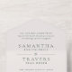 Traditional style all in one wedding invitation featuring a simple yet elegant design with your first names in a large serif font.
