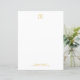 Traditional gold monogram letter sheet monogram. Front top center - square monogram with formal text, front bottom center name and address field. Back bottom center - small square monogram.