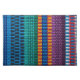 A traditional fabric weave pattern found in Guatemala. The design is bright and multicolored with red, blue, and yellow stripes. This is a photograph of fabric.