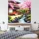 Traditional Japanese Garden With Cherry Blossoms Canvas Print