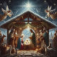 This beautiful and festive Nativity scene is a perfect addition to your Christmas decor. The artwork features the Holy Family, Mary, Joseph, and baby Jesus, surrounded by adoring angels and shepherds. The scene is set against a backdrop of twinkling stars and a shining star, symbolizing the birth of Christ. This timeless image is a reminder of the true meaning of Christmas.