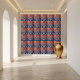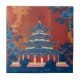 Marrying classic elegance with vibrant color, this Chinoiserie-style tile showcases a beautiful multi-tiered Asian pagoda, set against rich red tones with floral blue embellishments. Whether used in modern decor or vintage spaces, it brings a refined global flair to any setting.
