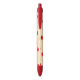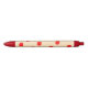 This pen showcases an irregular Pattern of red polka dots over a yellowish surface.