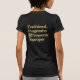 My overall review is that the T-shirt is nice, it fits true to size however the font is significantly smaller than advertised and you can't read it. The printing is unreadable and there is a strain to read it. It does not look like the advertised product. Maybe the shirt color is darker or a larger more visible font should have been used. Photos with and without flash and font is barely legible.