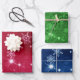 Traditional Red Blue & Green Snowflake Motif Wrapping Paper Sheets
