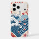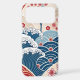 Traditional Red Blue Japanese Wave Sakura Pattern iPhone Case