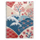 Traditional Red Blue Japanese Wave Sakura Pattern Notebook