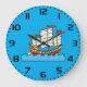 Traditional Red Chinese Junk Ship on Blue Waves Large Clock