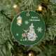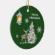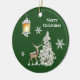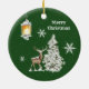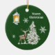 Traditional Rustic Merry Christmas Ceramic Ornament. The green background color can be modified.
