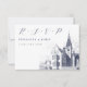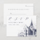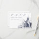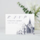 This formal wedding RSVP card features a vintage illustration of a palace, which you can replace with an image of your wedding venue (transparent or white background preferred). Elegant dark blue lettering lays out the title, whether the guest will accept or decline, and the date to respond by. There's also a line for you to hand-write the guest's ID number (which is helpful when keeping track of many RSVPs).