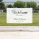 A beautiful way to welcome your guests to one of the most important days of your life with this wedding hanging banner sign. A minimalist classy welcome wedding banner sign with customized traditional script text. Customize and make it your own! Select the size of the banner you are after to suit your wedding needs.