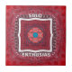 White: Featured in the central square frame and the text "SOLO" and "ENTHUSIAST," white provides a striking contrast against the vibrant red, enhancing readability.