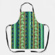 Great color and even though I ordered the kid size, it covers well enough to use during the holidays. I am not a big woman and prefer a shorter apron. I stand 5"6" and the length of the garment goes to mid-thigh. The tie straps fit well at my waist and even though there is no neck strap adjustment, the opening is plenty big enough. I am happy with the size and fit. I am sharing my apron with my 10 year old grandson, too! The color is vibrant and looks good, as shown on the website. The stitching looks strong and reinforced. Photographed is front side and back side of the apron, reinforced straps and coloring. My phone camera may not be the best at showing the details.