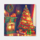 This magnet features a traditionally Christmas decorated room with Christmas tree, fireplace, gifts and many beautiful details in classic green, red and gold colors. Wonderful for the romantic Christmas season, also beautiful gift idea! Designed with AI based on my idea.