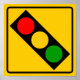 International style road and highway warning sign advising of an upcoming traffic light.