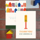 Neighborhood birthday party theme featuring illustration on front of traffic light with "thanks for stopping by" text. Back features houses and buildings with thank you message.