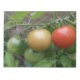 This awesome notepad features a photograph of a bunch of ripening tomatoes including a red, orange and green cherry tomato in a line, growing on a tomato plant in a suburban garden. The photograph was taken using macro photography for a detailed result.