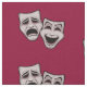 Illustration of Greek theater masks depicting tragedy & comedy, repeat pattern, background color customizable