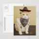 Bubba kitty in a faux cowhide vest, bandana and cowboy hat. ( I finally found him a cowboy hat that's not too bad.) He has Scottish heritage, but lives in Texas. This very afternoon all of the trail riders are converging on Houston for the big livestock show. Bubba heard that they get together everynight and eat. Sounds good to him. He likes people and likes to try different foods. You can customize the text.
