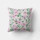 Trailing Pink Clematis Watercolor Floral Pattern Throw Pillow