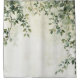 This beautiful shower curtain art in soft colors features trailing vines with white blossoms on a neutral background.