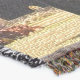 A quality printed throw has its advantages. This is a much finer weave throw than its loopier cousins, and though lighter, it is worth the investment for custom room accessorizing. The back is much prettier than the typical brown, and the fringe on the long sides very vivid, the selvage nicely done. Before photographing, I washed the throw in cold water, delicate, with a thicker woven throw the same size. On tumble dry low, this throw was dry in half the time as the other. This is a very practical quality if you use throws for furniture covers or to wrap up in frequently. The sleekness of the fabric makes it a great layer for accenting or protecting without the feeling of sitting on too much stuff. Perfect for napping or when you feel a light chill coming on. The color printing is beautiful and on this fabric, matched the design and color of my Photoshop image. This is an advantage for blending room fabrics and colors. The fringe on the short sides prints the colors from the design image and therefore varies from the side fringe. I streaked a white fractal line through the plaid pattern to give the illusion of weaving. This printed as crisp as an illusory thread, and put some white in the short side fringe, showing another advantage of print vs loomed- for artistic purposes, line lines, detail, and color integrity can be planned and preserved. My loomed throws have color limitations and more of a needlepoint texture. Print throws reproduce an exact image. The throw felt a little stiff straight out of the package, but this went away in the first delicate wash. Of course I searched the wash water for ink or bleeding and there was none.
