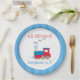 All aboard! Have a fun train themed birthday party with this bright and cheerful paper plate. Engineer stripes featured as the base pattern. Personalize the text and name. Coordinates with the entire Train Birthday Party Collection.