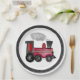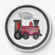 choo choo train chugs along with it's puff of smoke, rich red background and textured rim. children would LOVE eating their meals off of this plate. CHANGE THE WORDS "CHOO CHOO" in the puff of smoke to YOUR CHILDS NAME to more personilze this plate. GREAT THEME PARTY PLATE for any little engineer! dimensional computer art by kaps images
