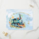 The cutest watercolor train engine inviting friends to a young boy's birthday party. This is the postcard version of this invitation, I have also made a flat card square invitation replicating this one.