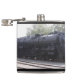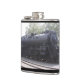 A flask featuring a photo of a train engine.