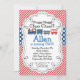 Train Engine, Red Stripes Blue Polka Dot Birthday Invitation